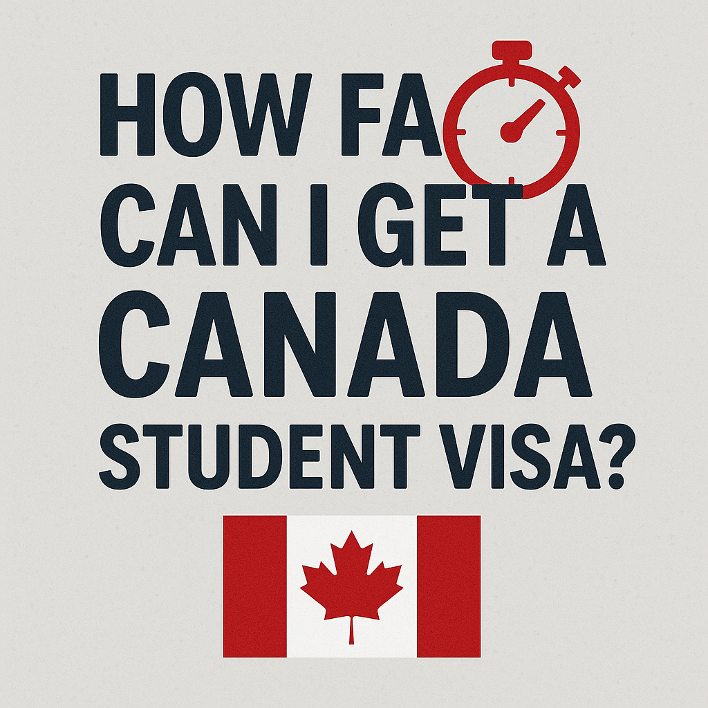 How fast can I get a Canada student visa? Illustration of a student holding a Canadian flag and passport, with a clock and airplane in the background symbolizing fast Canada student visa processing. Learning in Canada has never been more appealing. Thanks to its internationally recognised academic system, cosmopolitan campuses, and post-study options, the country […]